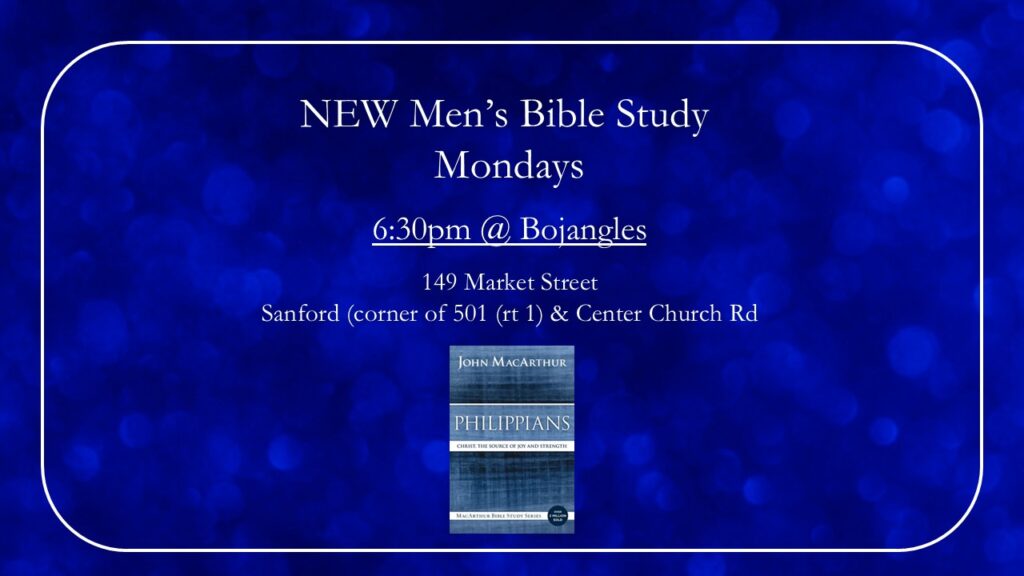 Men’s Bible Study. Join us at Bojangles, 149 Market Street, Sanford, NC 27332.
