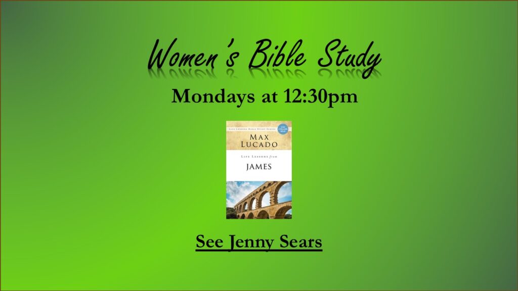 Women’s Bible Study meets at the Shepherd’s Baptist Church at 12:30pm.
