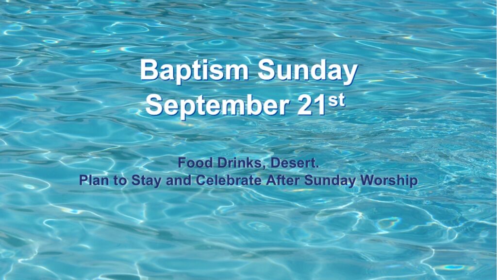 Baptism Sunday September 21, 2025. Following our worship service, we will have our Baptisms. A proclamation of Jesus Saving Grace.